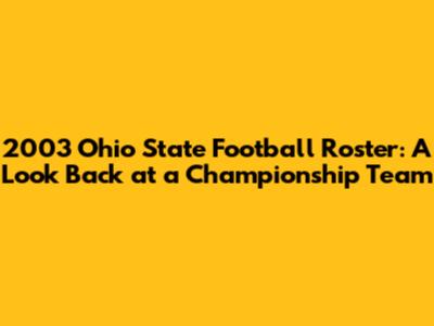 2003 Ohio State Football Roster: A Look Back At A Championship Team