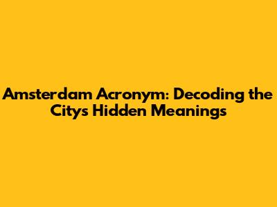 Amsterdam Acronym: Decoding The City's Hidden Meanings