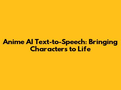 Anime AI Text-to-Speech: Bringing Characters To Life