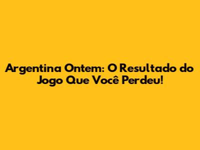 Argentina Ontem: O Resultado Do Jogo Que Você Perdeu!