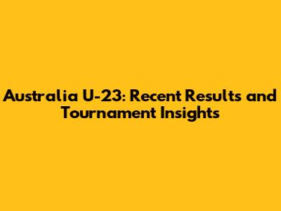 Australia U-23: Recent Results And Tournament Insights