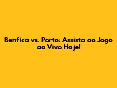 Benfica Vs. Porto: Assista Ao Jogo Ao Vivo Hoje!