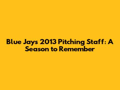 Blue Jays 2013 Pitching Staff: A Season To Remember