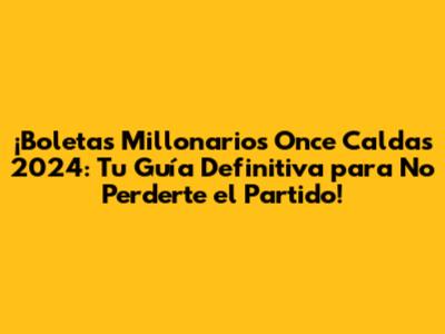 Boletas Millonarios Once Caldas 2024: ¡Consigue Tus Entradas!