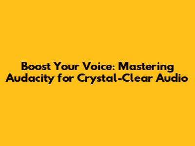 Boost Your Voice: Mastering Audacity For Crystal-Clear Audio