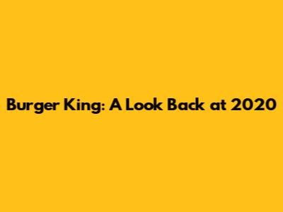 Burger King: A Look Back At 2020