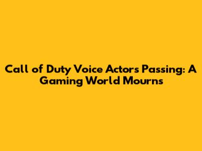 Call Of Duty Voice Actor's Passing: A Gaming World Mourns