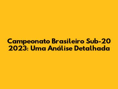 Campeonato Brasileiro Sub-20 2023: Guia Completo E Análise