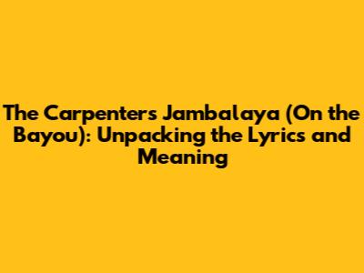Hey guys! Ever found yourself humming along to a song without really knowing what it's about? Well, let's dive into a classic that’s got many of us tapping our feet: The Carpenters' rendition of "Jambalaya (On the Bayou)." This tune, originally penned by Hank Williams, paints a vivid picture of life down in the Louisiana bayou. The Carpenters' version, with their signature smooth sound, gives it a unique twist. But what's the real story behind those catchy lyrics?