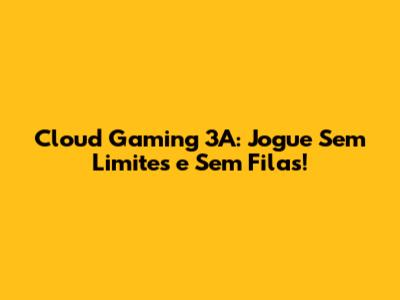 Cloud Gaming 3A: Jogue Sem Limites E Sem Filas!