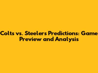 Colts Vs. Steelers Showdown: Predictions And Analysis