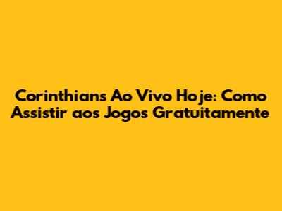 Corinthians Ao Vivo Hoje: Como Assistir Aos Jogos Gratuitamente