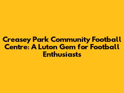 Hey everyone, let's dive into something pretty awesome – Creasey Park Community Football Centre! Situated right in the heart of Luton, this place isn’t just a sports facility; it's a vibrant hub for the local community, especially for all you football fanatics out there. If you're looking for a top-notch place to play, train, or just enjoy the beautiful game, Creasey Park has got you covered. This article will tell you why Creasey Park should be your go-to destination, covering everything from its amazing facilities to its impact on the community. Get ready to learn why Creasey Park is much more than just a football centre. It's a place where passion for the sport meets community spirit!