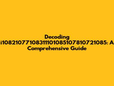 Decoding I10821077108311101085107810721085: A Comprehensive Guide