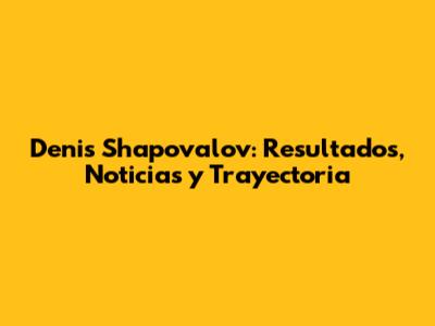 Denis Shapovalov: Resultados, Noticias Y Trayectoria