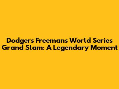 Dodgers' Freeman's World Series Grand Slam: A Legendary Moment