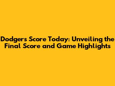 Dodgers Score Today: Latest Updates & Game Highlights