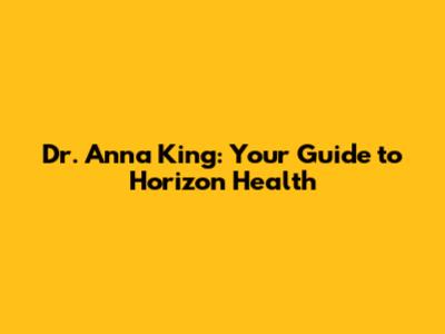 Dr. Anna King: Your Guide To Horizon Health