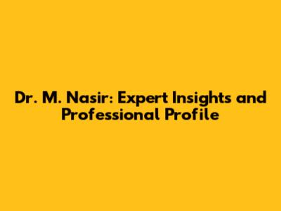 Dr. M. Nasir: Expert Insights And Professional Profile