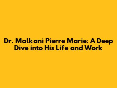 Dr. Malkani Pierre Marie: Biography, Career, And Achievements