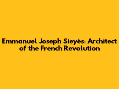 Emmanuel Joseph Sieyès: Architect Of The French Revolution
