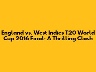 England Vs. West Indies T20 World Cup 2016 Final: A Thrilling Clash