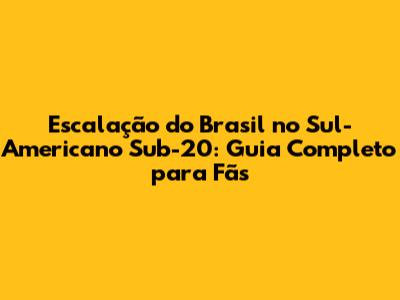 Escalação Do Brasil No Sul-Americano Sub-20: Tudo Que Você Precisa Saber