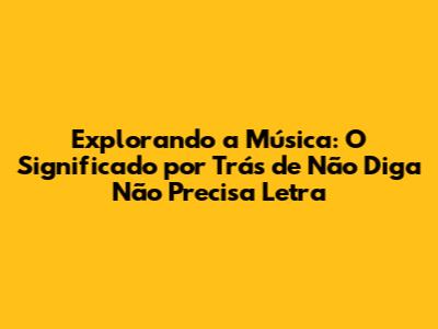 Explorando A Música: O Significado Por Trás De 'Não Diga Não Precisa Letra'
