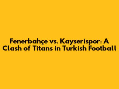 Hey sports fanatics! Get ready for an electrifying encounter as Fenerbahçe and Kayserispor lock horns in what promises to be a thrilling match. This clash isn't just about the three points; it's a battle of pride, strategy, and sheer determination. Let's dive deep into the heart of this match, breaking down everything from team dynamics to potential game-changers. Buckle up, because we're about to explore the ins and outs of this much-anticipated showdown!