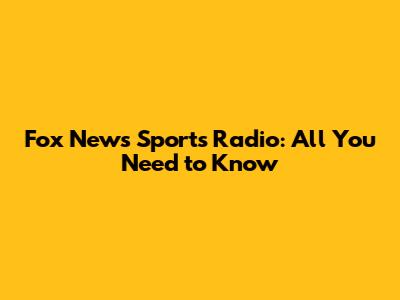 Fox News Sports Radio: All You Need To Know