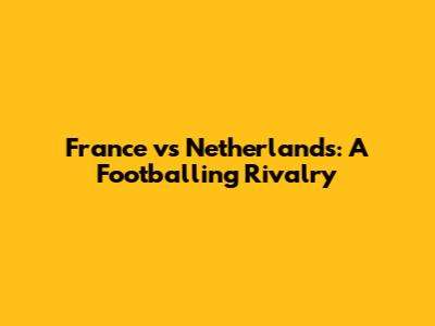 France Vs Netherlands: A Footballing Rivalry