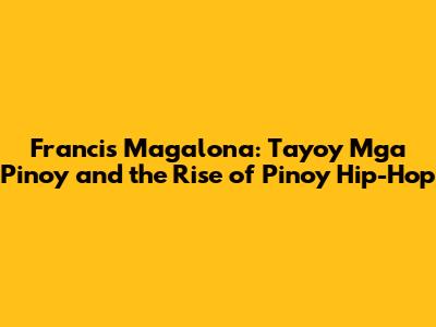 Hey guys! Ever heard a song that just screams Filipino pride? Well, if you haven't, let me introduce you to Francis Magalona, or as many Filipinos lovingly call him, Francis M. He was a total legend, and his song, "Tayo'y mga Pinoy," is practically an anthem. This song wasn't just a hit; it was a cultural phenomenon that helped define a generation. Today, we're diving deep into the impact of Francis M, the rise of Pinoy hip-hop, and why this song still resonates so strongly with us Pinoy folks. Get ready for a trip down memory lane, full of sick beats and serious vibes!