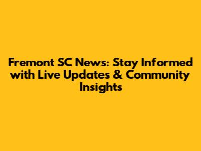 Stay Updated: Fremont SC News Today and Beyond