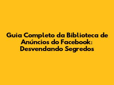 Guia Completo Da Biblioteca De Anúncios Do Facebook: Desvendando Segredos