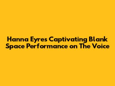 Hey everyone! Have you heard Hanna Eyre's incredible rendition of Taylor Swift's "Blank Space" on The Voice? If not, you're seriously missing out! This performance was absolutely phenomenal and it's something we should all discuss. From the moment she stepped on stage, Hanna commanded attention with her poise and incredible vocal talent. Her ability to deliver a unique interpretation of such a well-known song, while maintaining its original essence, is a testament to her artistry. We're going to dive deep into what made this performance so special, breaking down her vocal choices, stage presence, and the overall impact she had on the coaches and the audience. Trust me, it's a performance that deserves all the hype it gets. Let's get started, shall we?