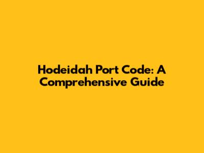 So, what exactly is the Hodeidah Port Code, and why is it so crucial? Let's get started!