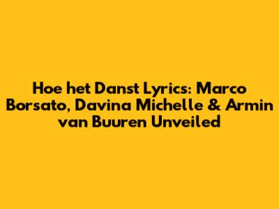 What's up, music lovers! Today, we're diving deep into a track that's been making waves and getting stuck in everyone's heads – "Hoe het danst" by Marco Borsato, Davina Michelle, and Armin van Buuren. This epic collaboration brings together three massive Dutch artists from totally different genres, and the result? Pure magic! If you've been humming the tune but can't quite catch all the words, or you're just curious about what makes this song so special, you've come to the right place. We're going to break down the lyrics, explore the vibes, and see why this song is an absolute must-listen. So grab your headphones, turn up the volume, and let's get into it!