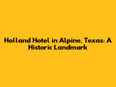 Hey everyone! Ever heard of the Holland Hotel in Alpine, Texas? If not, you're missing out on a serious slice of history and charm. This place isn't just a hotel; it's a landmark, a testament to a bygone era, and a seriously cool spot to hang your hat if you're ever in West Texas. Let's dive in and explore why the Holland Hotel is so special, shall we?