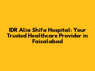 IDR Alia Shifa Hospital: Your Healthcare Partner In Faisalabad