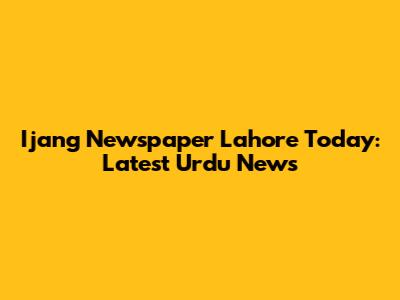Ijang Newspaper Lahore Today: Latest Urdu News