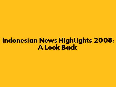 Hey guys! Let's take a trip down memory lane and revisit the Indonesian news in 2008. It was a year filled with significant events that shaped the nation and its people. From political shifts to economic developments and social happenings, 2008 was definitely a year to remember. We'll be diving deep into the major stories that made headlines, giving you the lowdown on what was going down in the archipelago.