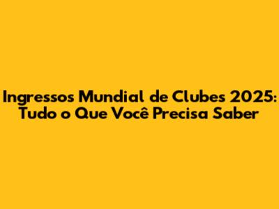 Ingressos Para O Mundial De Clubes 2025: Guia Completo