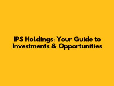 IPS Holdings: Your Guide To Investments & Opportunities