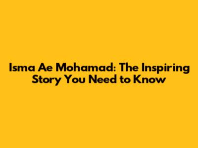 Isma Ae Mohamad: The Inspiring Story You Need To Know
