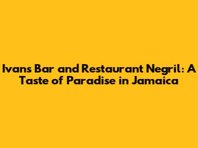 Ivan's Bar Negril: Your Guide To Paradise