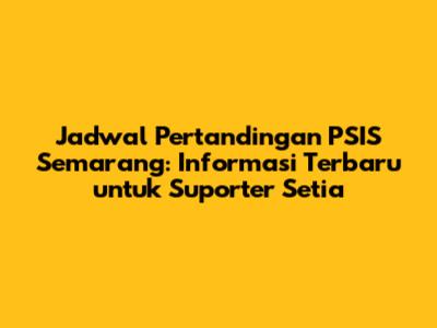 Jadwal pertandingan PSIS Semarang adalah informasi penting bagi para suporter . Dengan mengetahui jadwal pertandingan, kalian bisa merencanakan waktu untuk mendukung tim kesayangan, baik secara langsung di stadion maupun melalui siaran langsung. Dapatkan informasi jadwal PSIS Semarang dari sumber-sumber terpercaya, seperti situs web resmi, media sosial resmi, dan aplikasi berita olahraga. Jangan lupa untuk selalu memantau informasi terbaru, karena jadwal pertandingan bisa saja berubah sewaktu-waktu. Dukung terus PSIS Semarang dalam setiap pertandingan , tunjukkan semangat kalian sebagai suporter setia!