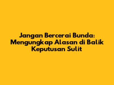 Jangan Bercerai Bunda: Mengungkap Alasan Di Balik Keputusan Sulit