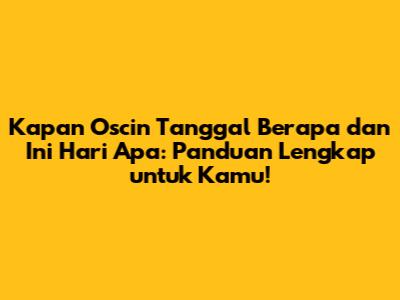 Kapan Oscin Dilaksanakan? Yuk, Cek Jadwalnya!