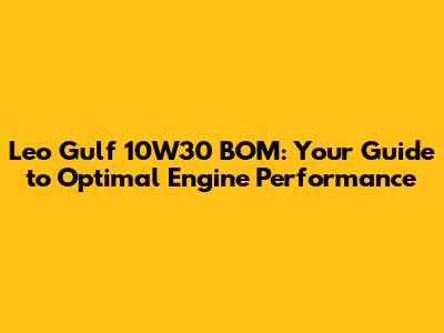 Leo Gulf 10W30 BOM: Your Guide To Optimal Engine Performance