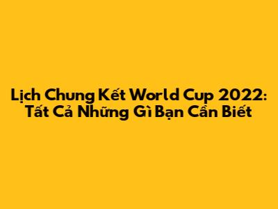 Lịch Thi Đấu Chung Kết World Cup 2022